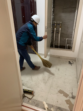 共有2名黨員,20多名團(tuán)員參加此次義務(wù)勞動(dòng)。在黨員同志的模范帶頭下,大家深入三期工程現(xiàn)場(chǎng),圍繞工程竣工收尾階段對(duì)高層25#、26#、27#樓進(jìn)行衛(wèi)生清理,主要清掃每層樓的公共區(qū)域及連廊部分。雖然天氣寒冷,但是大家熱情高漲、干勁十足。大家分工合作,由上至下,不放過(guò)每一個(gè)角落的垃圾。在3個(gè)多小時(shí)的共同努力下,大家共完成了102層樓的衛(wèi)生清理工作。