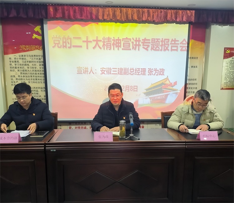 2月8日,公司副總經(jīng)理張為政赴香楓創(chuàng)意園為七公司、九公司、架業(yè)公司等聯(lián)系點單位開展黨的二十大精神專題宣講,公司招標中心主任張俊、成本合約部主任陳鵬參加。