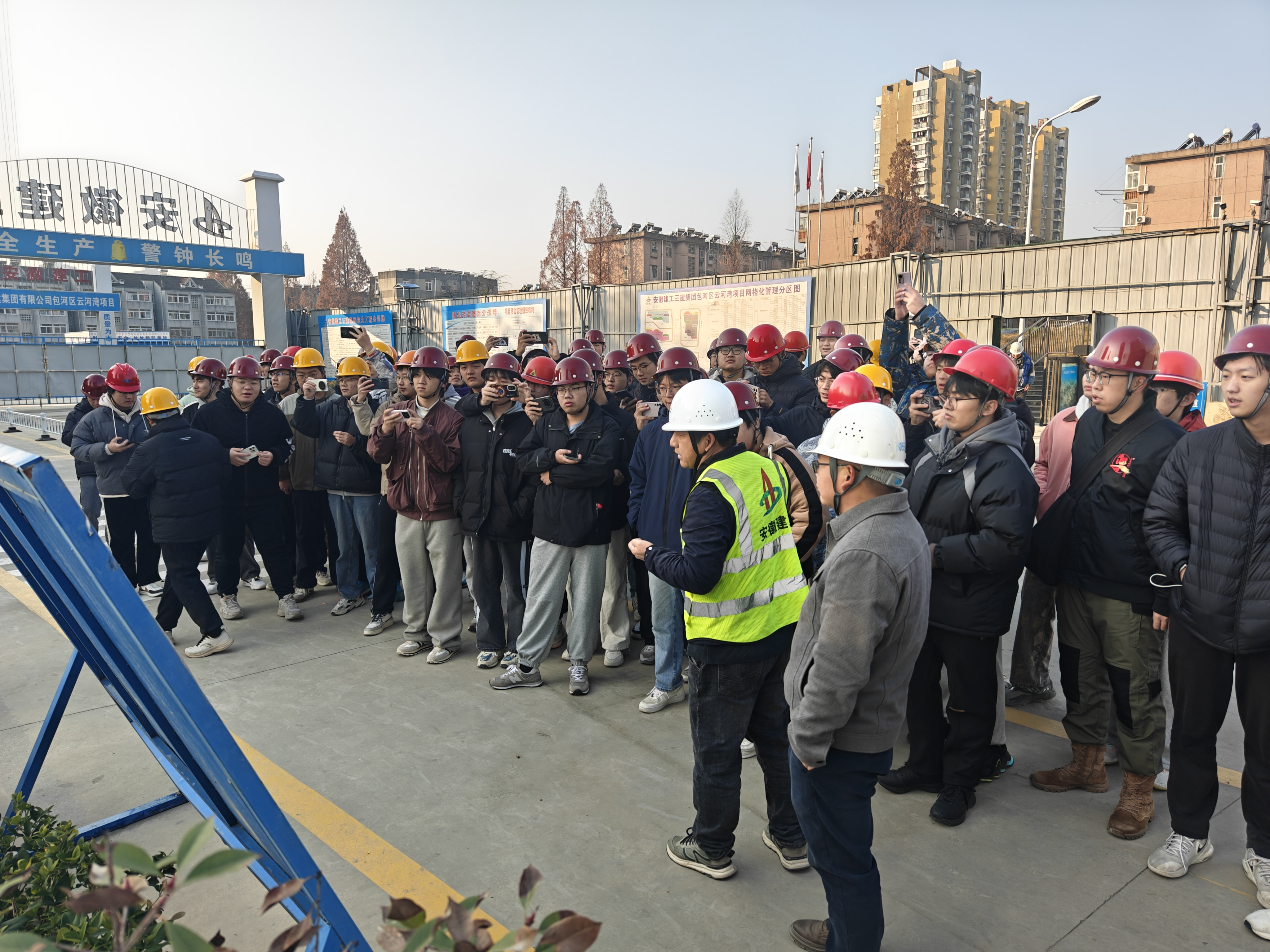 上午9時,同學們在項目技術負責和生產(chǎn)負責的帶領下,有序進入工地現(xiàn)場,詳細了項目的整體規(guī)劃、施工進度以及施工過程中采用的新技術、新工藝。學生們聽得津津有味,不時提出專業(yè)問題,兩人也耐心解答,現(xiàn)場氣氛熱烈。