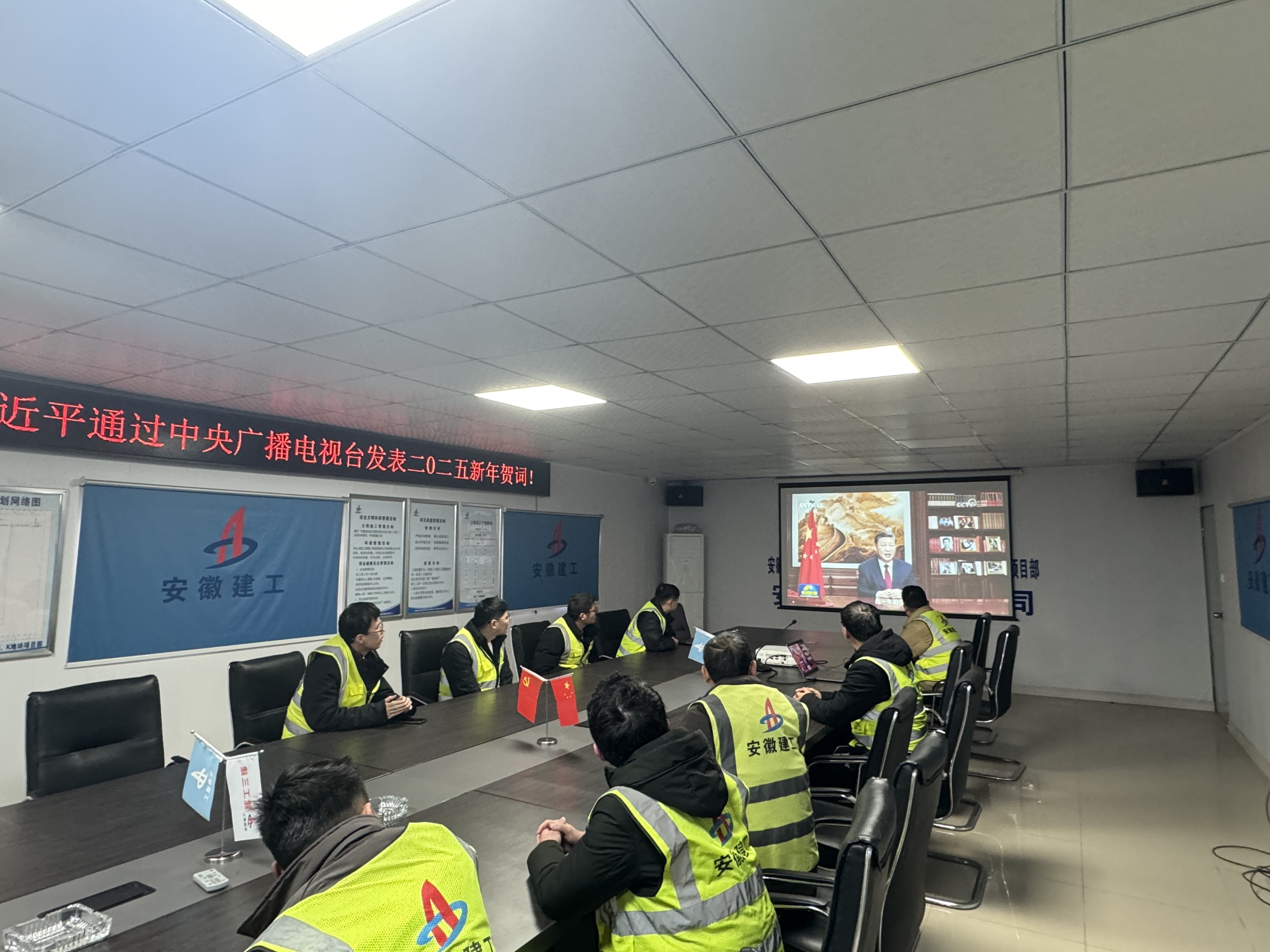 12月31日晚,習近平總書記發表二〇二五年新年賀詞。建工三建集團引江濟淮HK項目組織項目人員在項目會議室集中觀看學習,聆聽總書記的新年賀詞,感受過去一年偉大祖國取得的發展成就,共同迎接即將到來的2025年。