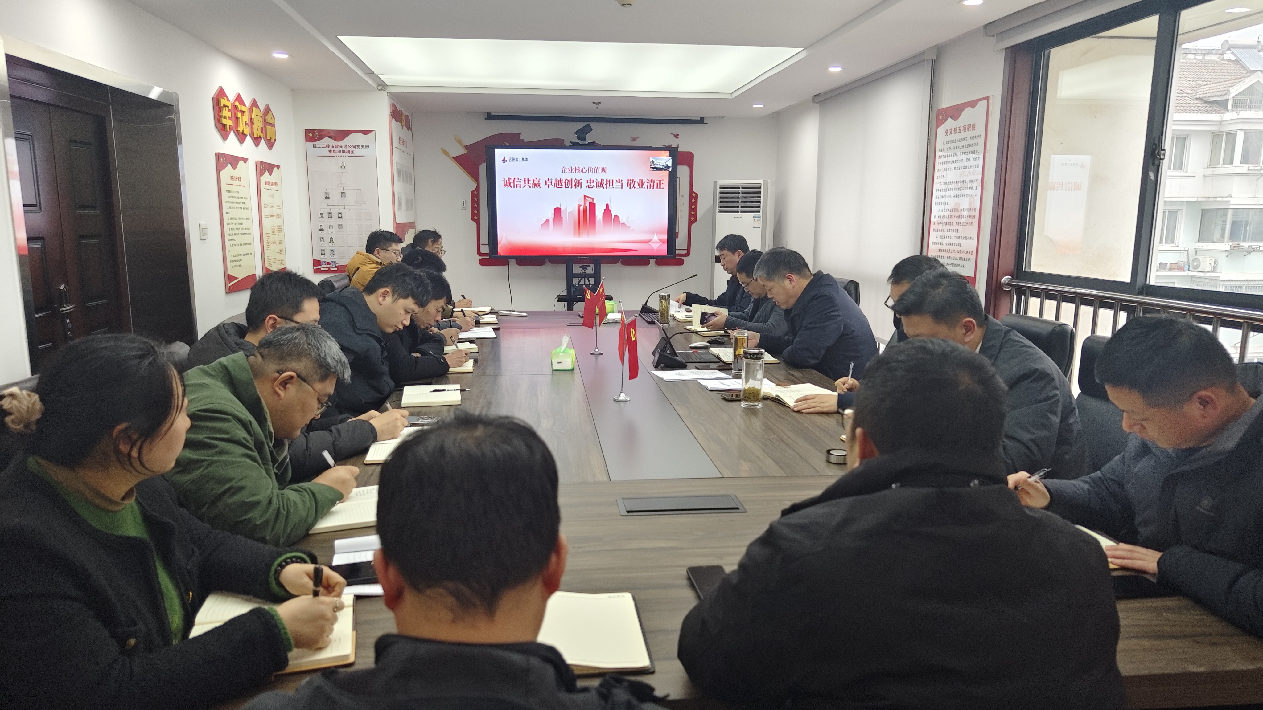 近日,門窗公司黨支部組織全體員工深入學習集團核心價值觀,深刻領會“誠信共贏、卓越創新、忠誠擔當、敬業清正”的豐富內涵和深刻意義。會議要求,全體職工要將集團核心價值觀作為日常工作的行為準則,切實將集團核心價值觀落實到崗位職責和實際工作中,真正做到內化于心,外化于行,在實踐中落地生根。