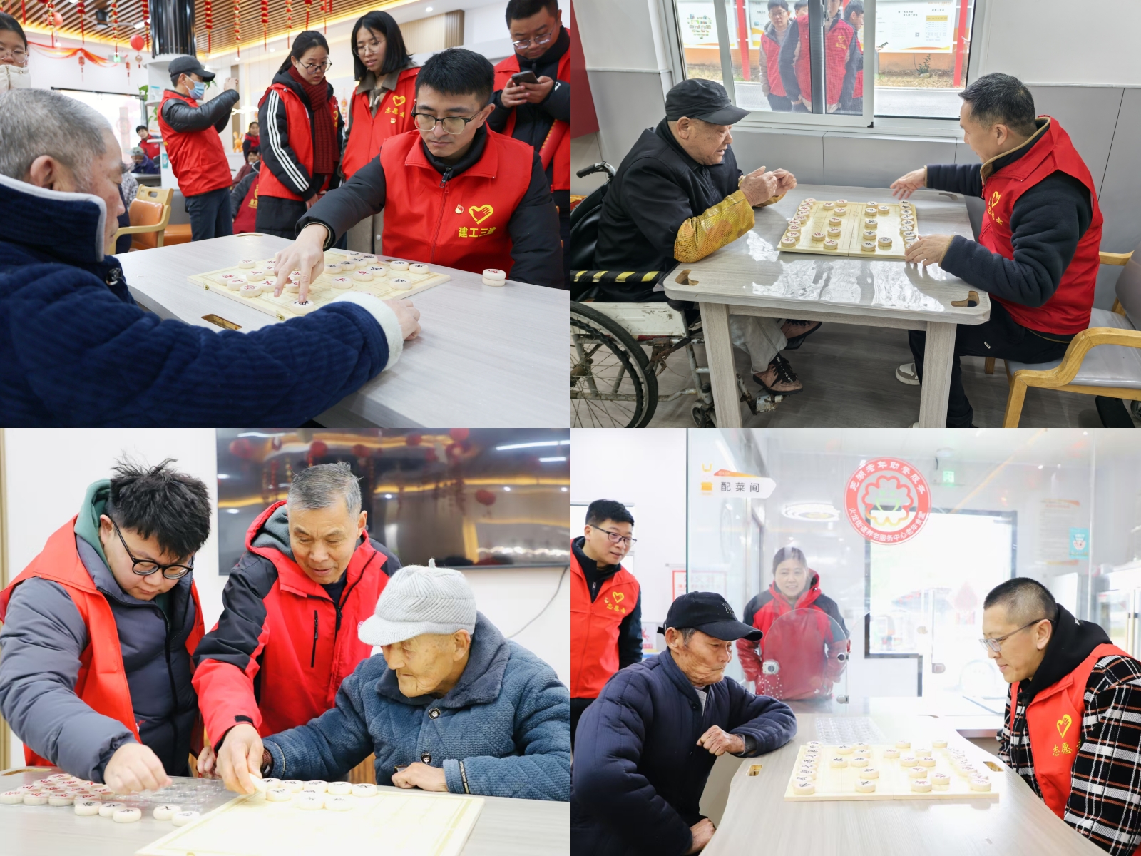 活動在溫馨的氛圍中拉開帷幕。頤養中心負責人系統介紹了院區智慧康養設施及適老化功能分區,志愿者們通過實地探訪深入了解長者日常起居與文娛生活。在活動中心互動環節,青年志愿者與老人展開象棋對弈、聆聽紅色往事,革命歲月的崢嶸故事與新時代青年的蓬勃朝氣交織成和諧畫面。