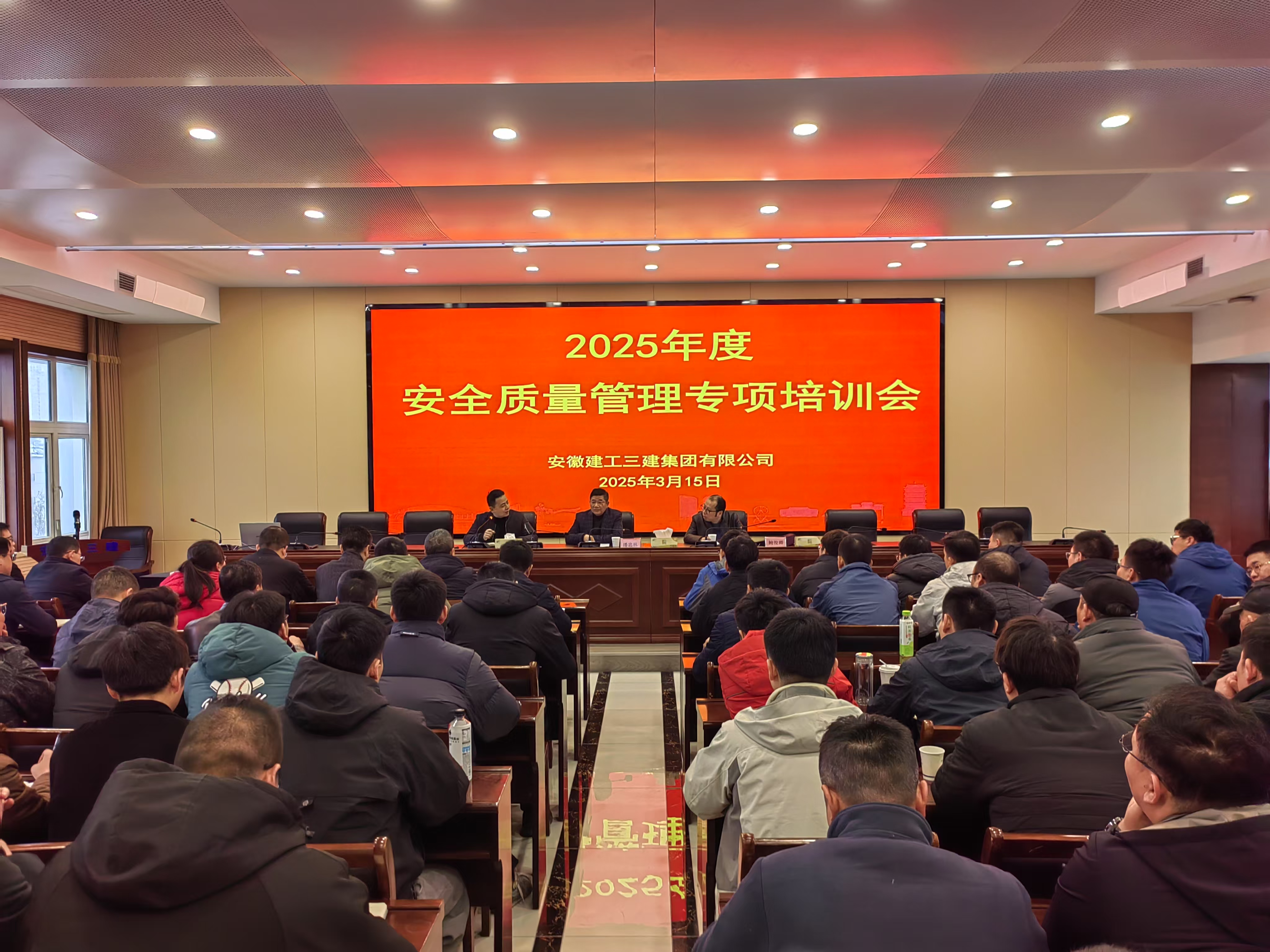 為進(jìn)一步提升工程質(zhì)量安全管理水平,強(qiáng)化全員質(zhì)量安全意識(shí),3月15日,建工三建聯(lián)合合肥市重點(diǎn)局第三方專業(yè)機(jī)構(gòu)遠(yuǎn)信公司開展質(zhì)量安全培訓(xùn)活動(dòng)。公司各項(xiàng)目負(fù)責(zé)人、安全技術(shù)骨干、項(xiàng)目管理人員等200余人在主會(huì)場參加,外地分公司、項(xiàng)目部通過視頻參會(huì)。