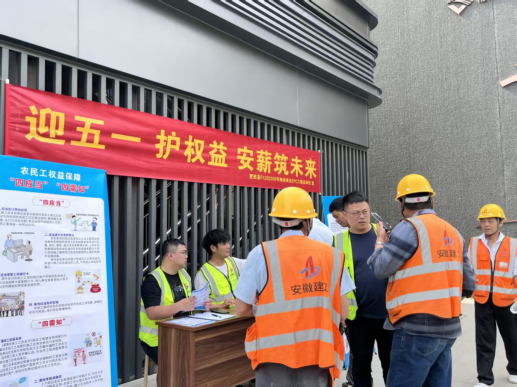 4月30日,肥西縣FX202356號地塊項目以“迎五一 護權益 安薪筑未來”為主題,開展“建筑工地勞務實名制管理深化行動”。通過“智慧監管+精準服務+長效治理”的模式,全面壓實項目管理責任,筑牢農民工工資支付“防火墻”。