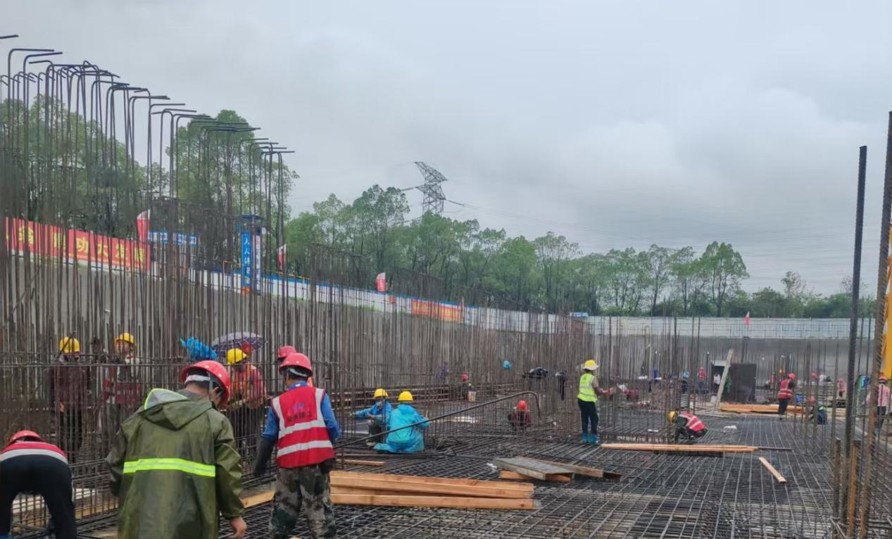 在1#樓、2#樓筏板混凝土澆筑的關(guān)鍵任務(wù)中,項目團隊展現(xiàn)出非凡的擔(dān)當。20日至21日暴雨突襲,管理人員堅守一線指揮,工人們頂風(fēng)冒雨作業(yè),雨水浸透衣衫卻未澆滅他們的熱情,經(jīng)過48小時科學(xué)高效輪轉(zhuǎn)作業(yè),圓滿完成澆筑任務(wù),為后續(xù)施工爭取寶貴時間。