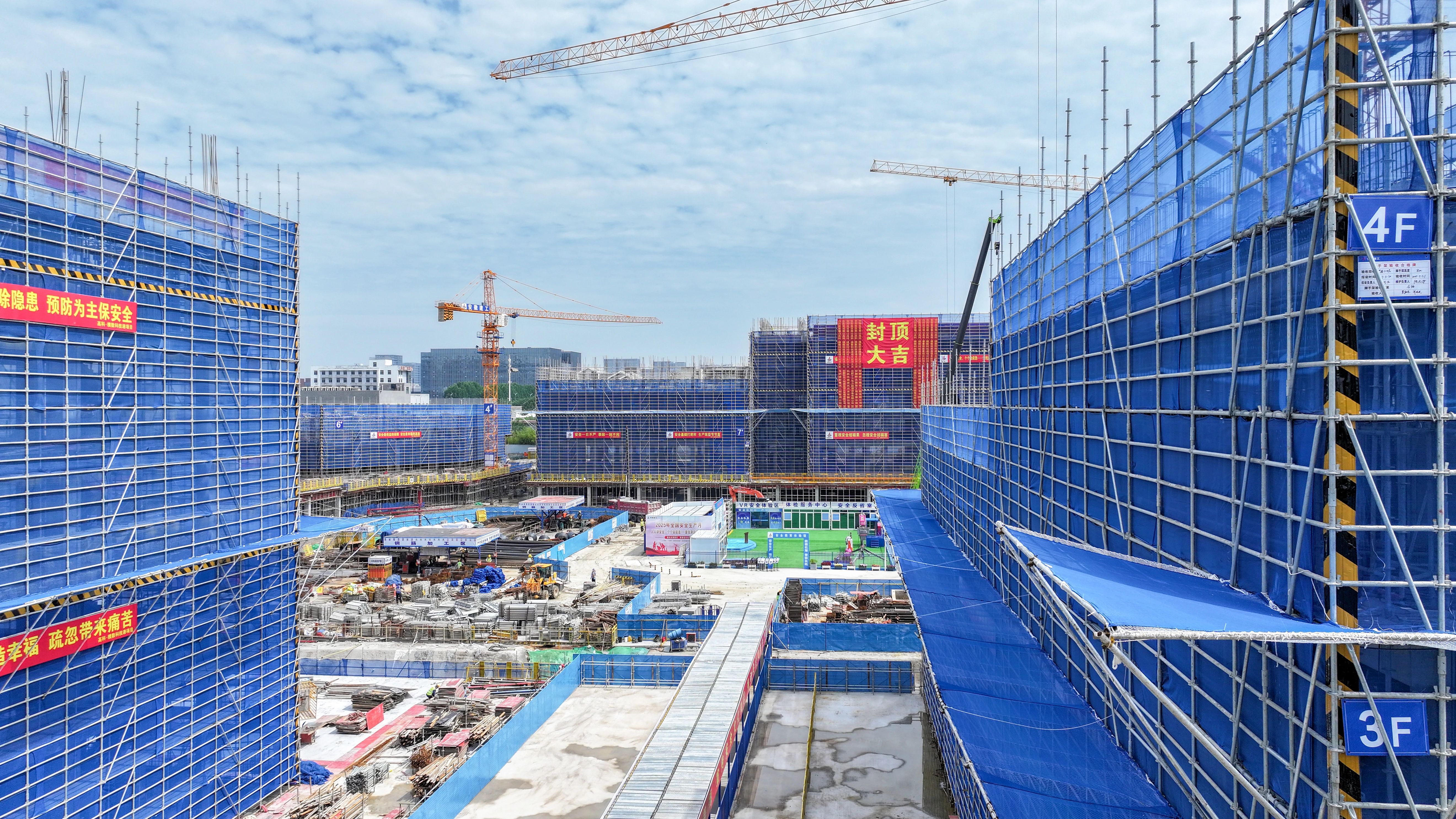 目前,項目2號樓和8號樓已順利完成主體結構封頂,標志著項目建設取得重要階段性成果。據了解,面對近期高溫酷暑與梅雨天氣的雙重考驗,項目部科學制定施工方案,采取"錯峰施工+智能監測+動態防護"綜合策略,確保施工安全和進度。通過合理調整作業時間,避開高溫時段,保障施工人員身體健康;利用智能監測系統實時監控施工現場數據,及時排查安全隱患;根據天氣變化動態調整防護措施和施工計劃,實現了施工安全與工程進度的統籌推進。